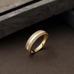 Bilezikci'nin özel tasarımı olan bu altın yüzük, mıhlı taşlarla süslenerek hem estetik bir görünüm sunar hem de taşların düşmesine karşı tam bir koruma sağlar. Taşların mıhlanarak işlenmesi, zarafet ve dayanıklılığı bir arada sunar.