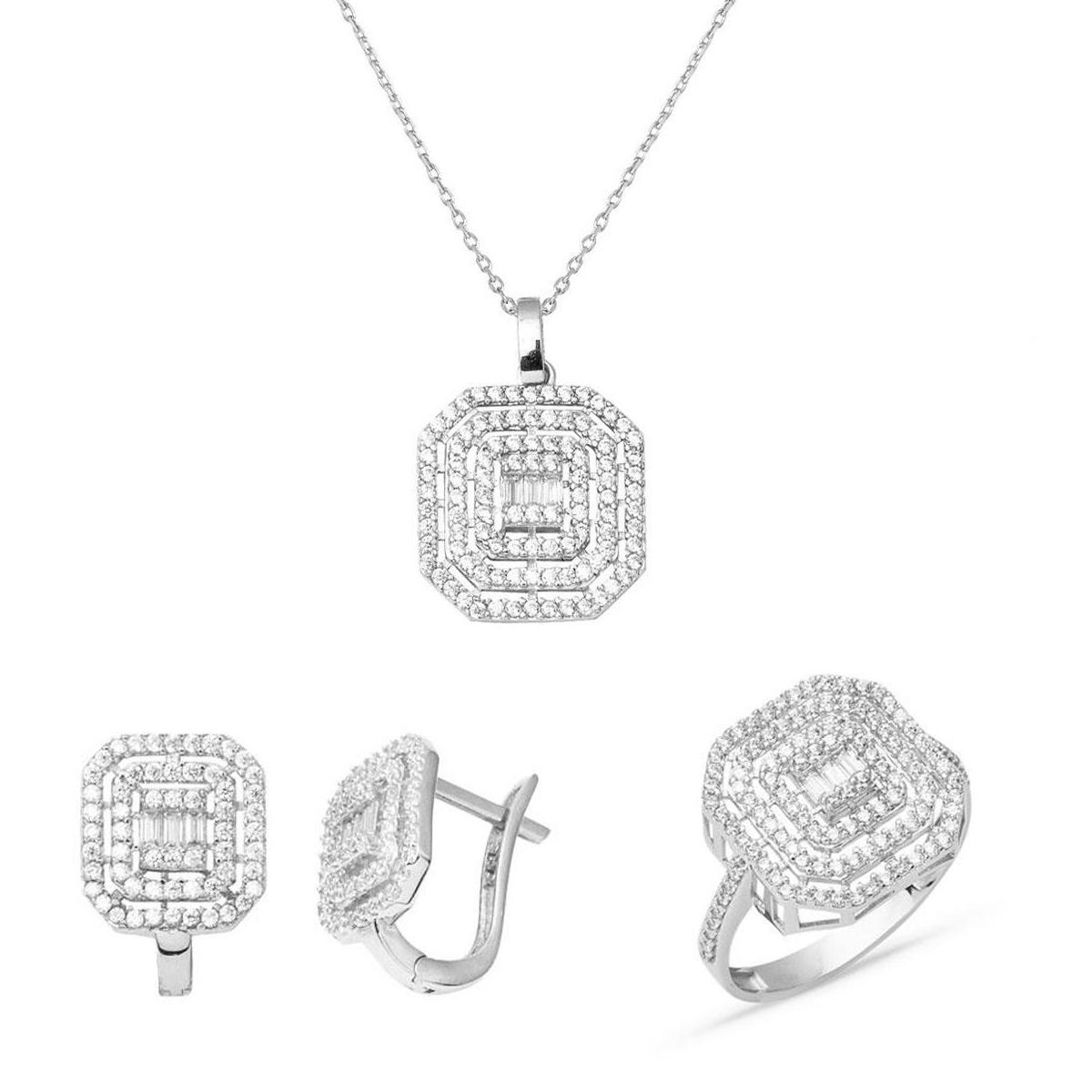 14 Ayar Baget Taşlı Beyaz Altın Set