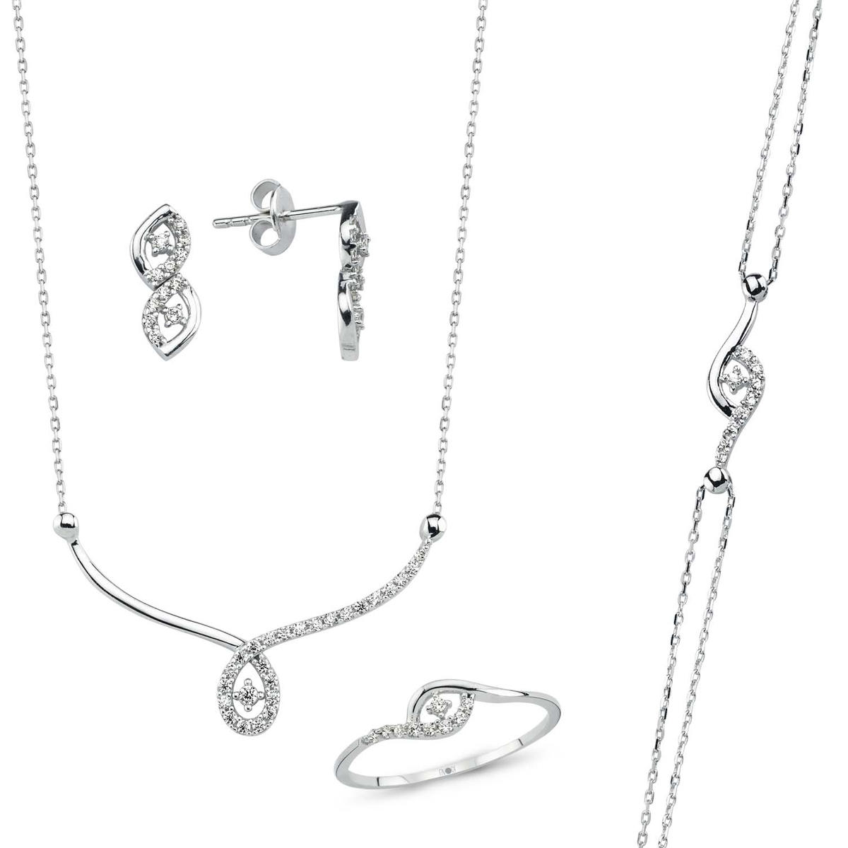 Esnek ve Şık Tasarım: Setin her bir parçasındaki taşlar, mıhlanarak işlenmiştir, bu da her bir parçanın ayrı ayrı parıldamasını ve dikkat çekmesini sağlar. Bu set, hem günlük kullanım hem de özel etkinlikler için ideal bir seçenektir.