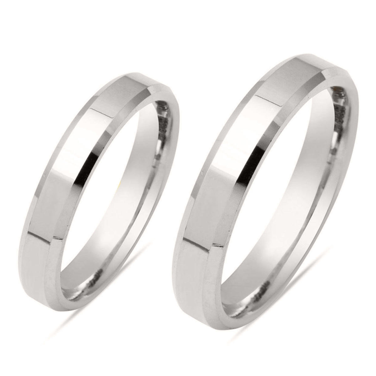 Klasik Köşeli Beyaz Altın 14 Ayar Çift Alyans 4 mm.