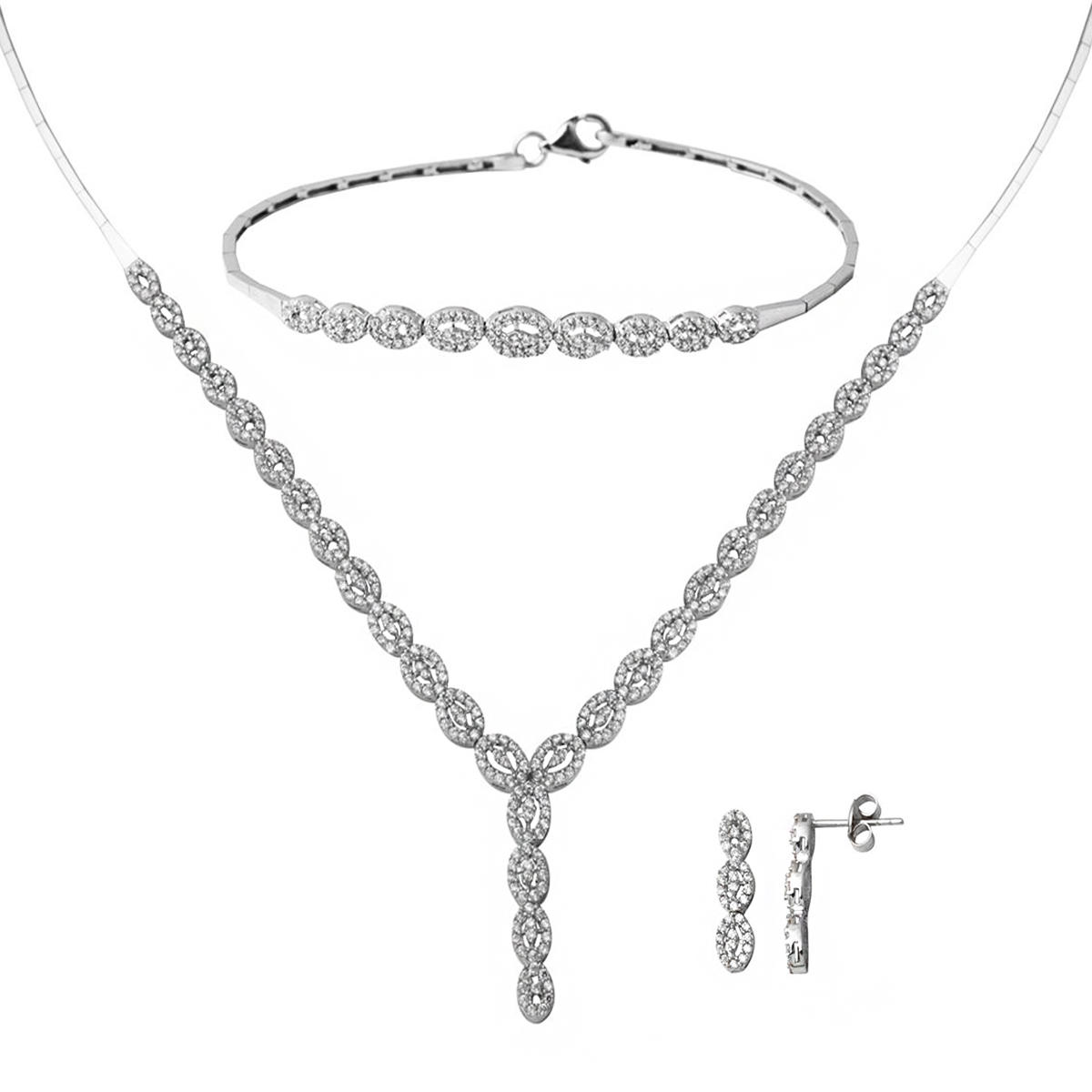 Esnek ve Şık Tasarım: Setin her bir parçasındaki taşlar, mıhlanarak işlenmiştir, bu da her bir parçanın ayrı ayrı parıldamasını ve dikkat çekmesini sağlar. Bu set, hem günlük kullanım hem de özel etkinlikler için ideal bir seçenektir.