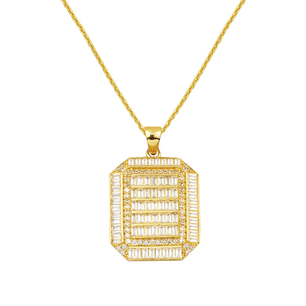 Trend kombinlerin vazgeçilmez parçası olan altın kolyelerde, baget taşların kullanımı ayrı bir estetik katıyor. Bagetlerle zenginleştirilmiş altın kolyeler, her kombini anında göz alıcı hale getiriyor.